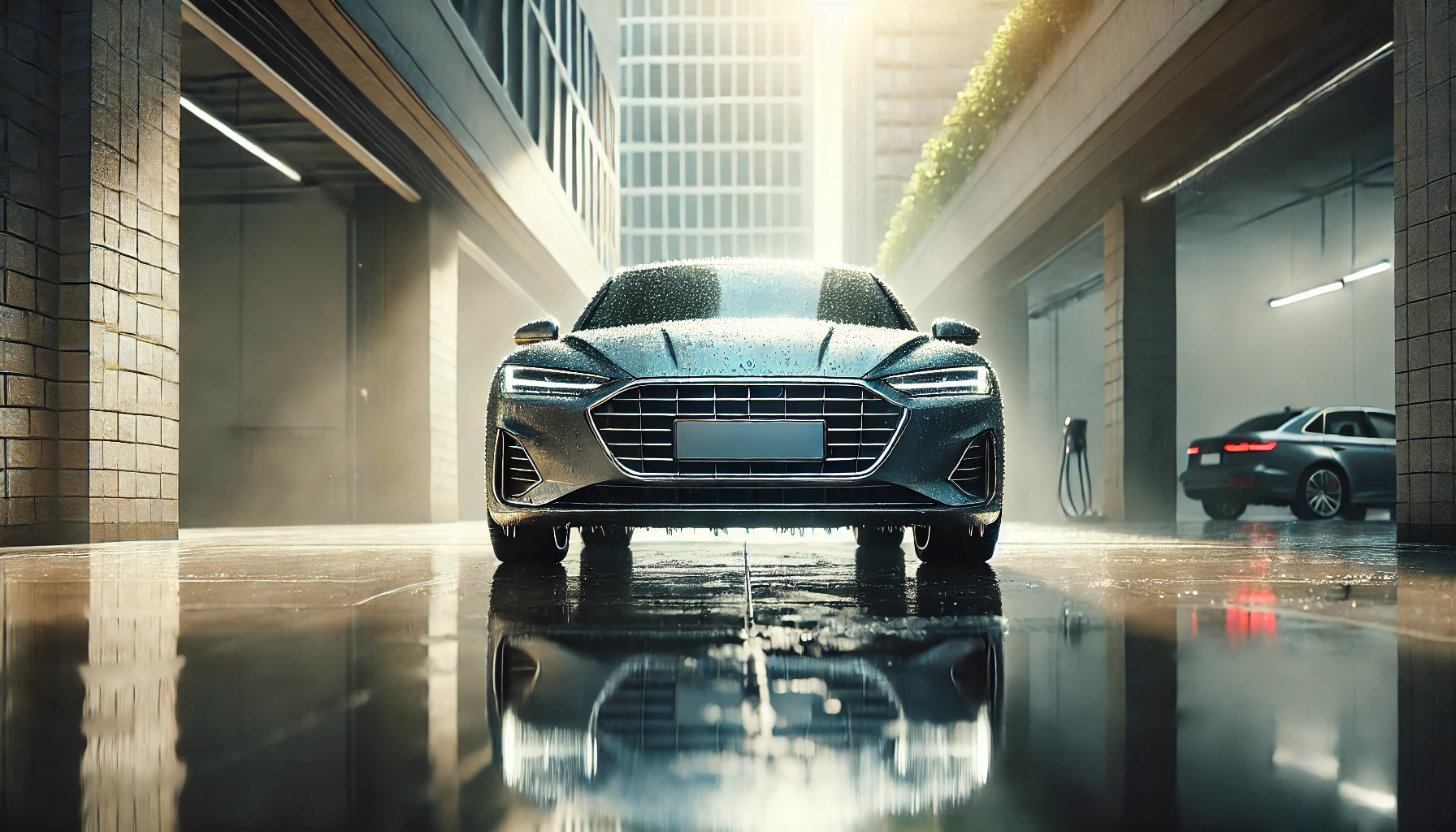 Shampoo the exterior with our powerwash using alkaline water to prevent as much water spots, than we scrub the whole car with sponge microfiber towels to effectively remove any bad residue while keeping them from not scratching the paint, we rinse the whole car and finally use our exterior wax to keep it bright and shiny.